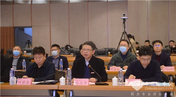 福建省科技厅、工业和信息化厅、财政厅、教育厅、卫生健康委员会、商务厅、生态环境厅、创新研究院、疾病预防控制中心领导,福州市进口冷链食品集中监管仓、福建省汽车工业集团有限公司、厦门金龙联合汽车工业有限公司等项目关联单位负责人,以及福建师范大学校领导、相关职能部门、生命科学学院、南方生物医学研究中心负责人、团队骨干等参加了会议。会议由省科技厅党组成员、副厅长叶碧海主持。