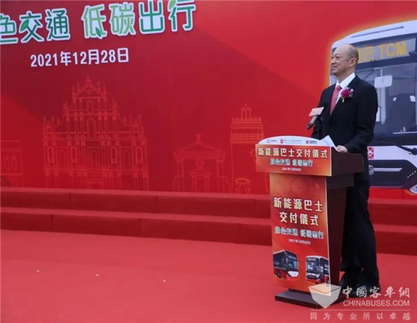 苏州金龙海格客车海外销售总经理姜海峰在致辞中表示,海格客车自1998年成立以来持续致力于客车研发、制造,产品质量、技术及售后服务水平均位居中国客车前列。2006年,海格客车首次进入澳门地区,15年来先后为澳门公交市场量身定制了低入口三门巴士、港珠澳大桥穿梭巴士等,目前在当地市场保有量超700台,居中国客车品牌第二位。在坚持用高标准服务澳门公共交通事业的同时,苏州金龙还积极致力于帮助澳门打造“绿色公共出行模式”,先后开发出增程式电动大巴、光伏增程电动巴士。此次海格增程式电动巴士投运后,无疑将进一步助力澳门城市公共交通服务向绿色环保转型升级。