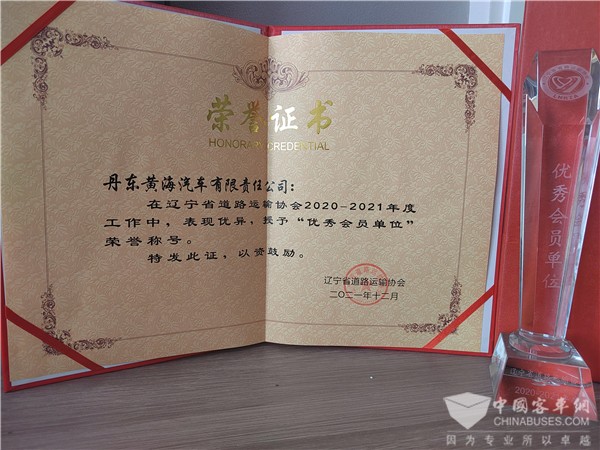 2021年12月30日,辽宁省道路运输协会正式公布《辽宁省道路运输协会关于评选表彰2020-2021年度优秀会员单位的决定》,凭借2021年以来为协会年度工作与道路运输行业发展作出的积极贡献,黄海客车获协会授予“2020-2021年度优秀会员单位”荣誉称号,为即将过去的2021年画上了一个完满的句号。