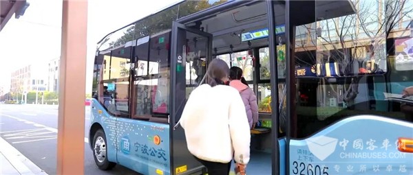 除此之外宇通还考虑到老人、小孩等特殊乘客的乘车痛点,为宇通E6S微循环小巴设计了低入口,方便老人小孩的上下车,对老人、小孩乘车出行更友好。