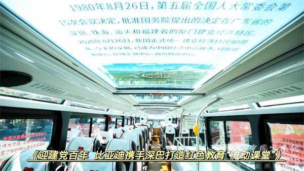 6月底,值此中国共产党成立100周年、全党上下掀起党史教育热潮之契机,深圳巴士集团以比亚迪纯电动公交车为载体,创新党史学习教育形式,推出3条红色主题线路和2个移动党群服务中心,将更多红色元素跟随公交“动起来”,为“绿色环保出行”这一城市名片再增添“流动红色课堂”注脚,献礼建党百年。