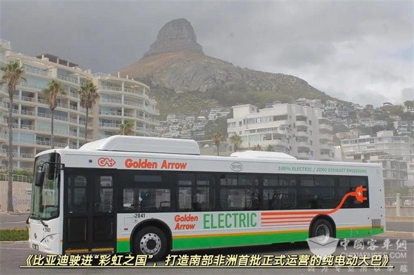 7月初,比亚迪携手南非金箭巴士服务公司 (Golden Arrow Bus Services)共同宣布,在南非西开普省首府开普敦市正式投入运营比亚迪纯电动大巴。这是南非,也是整个南部非洲首批正式上路运营的纯电动大巴,西开普省也成为南部非洲大陆第一个拥有正式上路运营的纯电动大巴的省份。