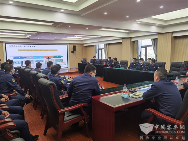 1月21日,在北京冬奥会张家口赛区核心区分指挥部内,通过现场及视频连线的方式,中通客车冬奥服务团队对张家口赛区100余名消防战士开展了包括氢燃料车辆氢气加注、储存、供给系统,氢燃料电池发动机、动力电池等车辆关键系统与对应的应急救援技巧的培训。此次培训,让消防战士掌握了氢燃料客车结构原理,丰富了其冬奥会安全应急保障方面的理论知识。