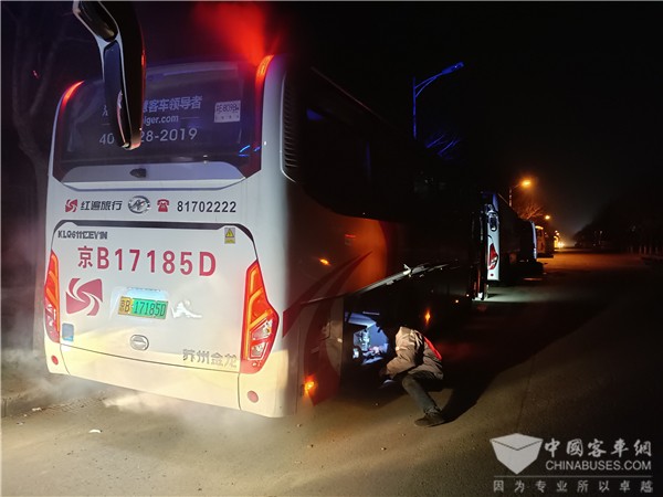 海格服务工程师深夜对冬奥服务车辆进行检查