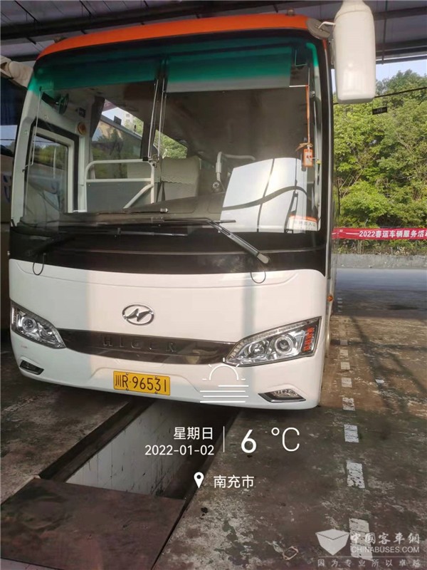 四川南充汽车运输(集团)有限公司的海格客车在苏州金龙服务站接受春运服务