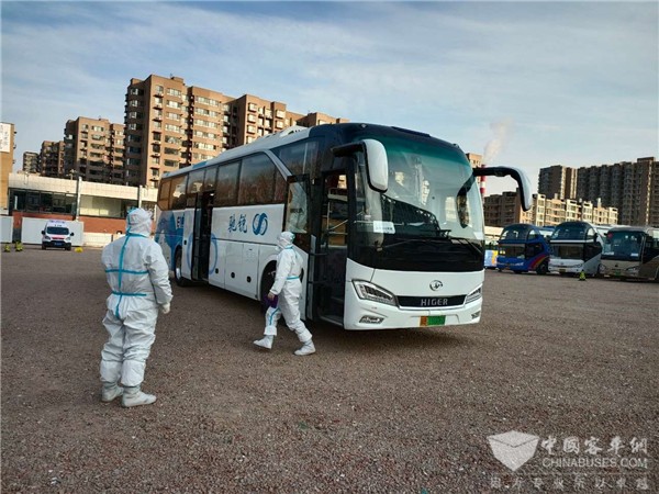 为确保北京冬奥会疫情防控安全,苏州金龙服务工程师为服务北京冬奥会的海格客车进行防疫消杀