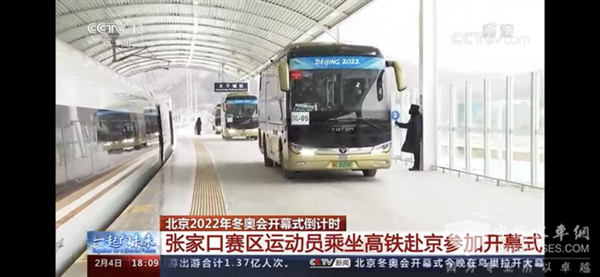 冬奥会开幕仪式当天,河北张家口赛区的各国运动员以及随队官员约800人乘坐京张高铁赴京,随着福田欧辉氢燃料大巴车缓缓的登陆站台,转运工作就正式开始了。为了最大限度的减少运动员和随队官员走动的频率和距离,每位乘车人的手上都会拿到不同颜色的号牌,以对应每一辆车的准确停靠,运动员和随队官员以这种公铁联运的形式乘坐大巴从冬奥村直接到火车站台上,然后上车。