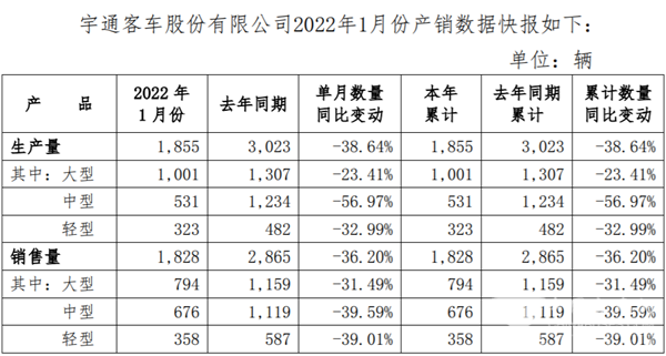 1月份,受虎年春节来临提前放假,叠加全球疫情形势复杂多变,我国本土疫情呈现局部零星点状散发,疫情防控形势仍然严峻等多重不利因素影响,对客车行业销售带来巨大挑战。