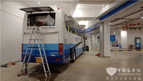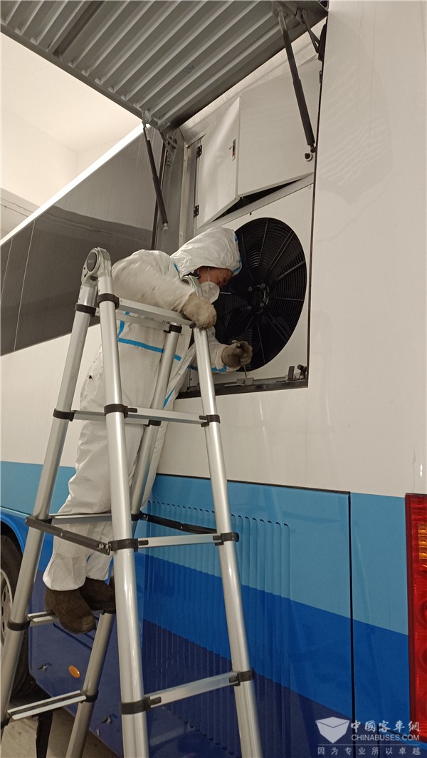 温暖冬奥,金龙荣誉!金龙冬奥服务团队身着防护服,在高感染概率的红色区域勇担重任,奋战一线。服务团队配合默契,拆卸,吹烤,清理、安装、试机、参数调整等工序有条不紊,细致周到。他们充分利用晚上10点以后实验结束间歇的时间进行作业,直至凌晨2点车辆测试完毕后才放心离开。