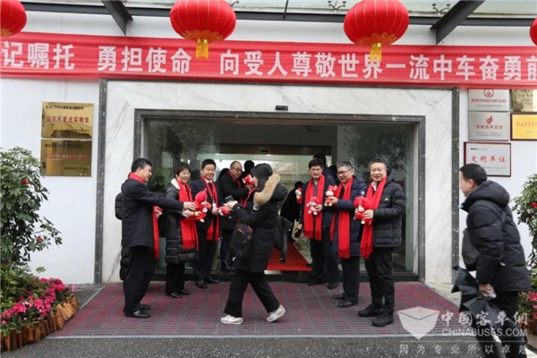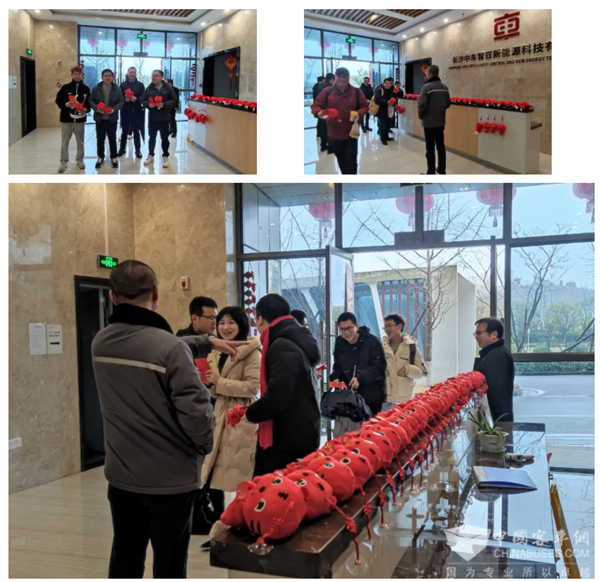 早晨8:40分,中车电动党委书记、董事长肖高华,党委副书记、总经理刘凌,党委副书记、纪委书记李龙煊等公司领导班子成员,手持吉祥虎,为广大员工送上了新春祝福,并庆贺公司虎年开工大吉。
