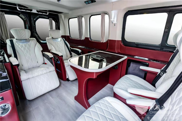 为公商务人群而来,高端商务轻客V90墨为其“量身定制”专属“移动办公室”,多重出行场景即可一“车”搞定。让旅途更具品质感,V90墨采用国内宽体轻客中首款原厂开发的电动侧移门,车内高度近1.8m,进入车内用户不用弯腰也可行动自如。不止于此,V90墨搭载VIP独立座椅,支持座椅加热及通风,靠背、腿托还可电动调节,辅以空气悬架,为用户提供媲美“头等舱”的舒适享受。