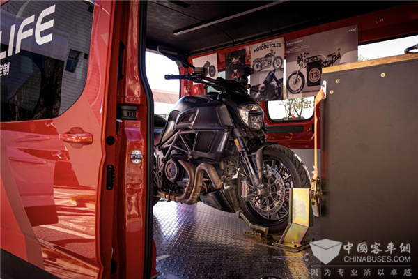 让“定制”解锁花样人生,便是上汽大通MAXUS 打造Van life万维生活的意义所在,而V90机车版的来袭,让追风少年们的自由灵魂即刻启程。V90机车版配置了熏黑前格栅、轮毂、大包围和尾翼,爆表的颜值,堪称追风骑士们的最佳拍档,战斗欲十足。在空间上,V90机车版容积达10.9m³,可容纳并排放置的两台两轮摩托或一台三轮摩托,甚至是一台专业级的ATV。此外,V90机车版还可化身移动机车服务站,整车内置多功能工作台和悬挂式置物架,在车内即可完成改装升级或是现场维修等机车相关工作。