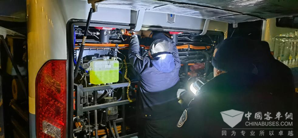 在赛事开始前,服务车辆C12F陆续抵达张家口,进行多次试运行,对驾驶员平均每日两场进行针对性的培训,并提供充足的客车易损件储备,确保赛事期间车辆零故障、零投诉和零抛锚。在赛事期间,保障团队每日早晚2次点检,检查各项功能与关键零部件情况,做到对车况了如指掌,时刻提供技术支持服务,确保运行车辆顺利完成接驳任务。“最早到达,最晚离开”,护航赛事出行,就是护航冬奥顺利。