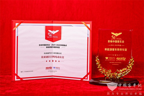 城市纯电动公交标杆车型 比亚迪B10获评“新能源客车推荐车型”