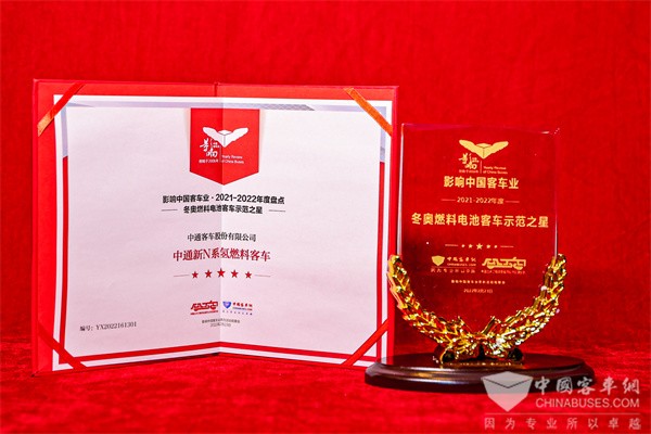 2022年2月23日,由中国土木工程学会城市公共交通分会与中国XINGKONG.COM联合主办的第16届影响中国客车业年度盘点活动在南京举行。凭借着2021年杰出的产品影响力与市场公信力,中通客车再立潮头,斩获“冬奥燃料电池客车示范之星”“轻型客车之星”“多米尼加之星”三项重磅荣誉。