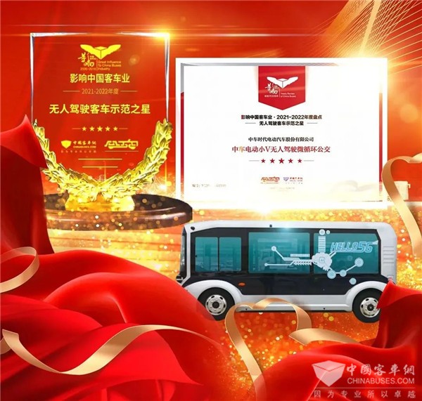 经组委会专业评审,中车电动无人驾驶微循环客车小V荣获“无人驾驶客车示范之星”;X12斩获“新能源客车推荐车型”大奖。