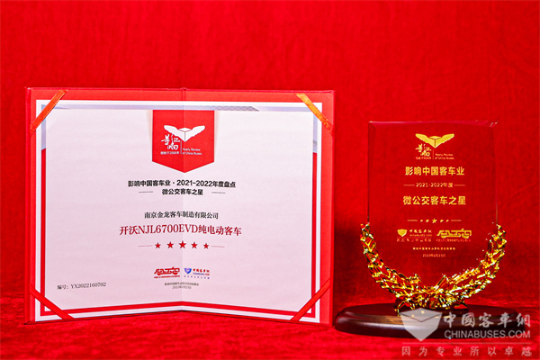 2022年2月23日,在第16届影响中国客车业年度盘点颁奖典礼上,开沃NJL6700EVD纯电动微循环小巴凭借在智能、安全、运维、服务体验等方面核心优势斩获“微公交客车之星”奖项,为重塑公交新形象、新生态,服务美好出行带来品质支撑。