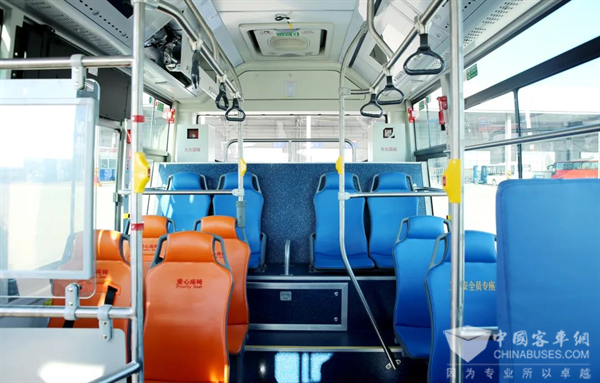 整车布局采用短前悬、长轴距、低入口的设计,动力电池全部顶置,采用高顶方案将电池、空调遮挡,使得车辆空间更加协调,并配置无障碍轮椅区、地铁扶手等,竭力打造司乘空间最大化、确保舒适运营。