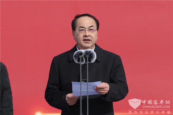 孙永才在启动仪式上致辞,他对吉林省2022年春季项目集中开工表示热烈祝贺。他强调,中车松原新能源产业基地项目全面启动,是深入贯彻落实习近平总书记视察吉林、视察中车的重要讲话和重要指示精神的具体行动,是全面建设吉林西部新能源产业高地、努力成为央地产业合作典范的重要体现。