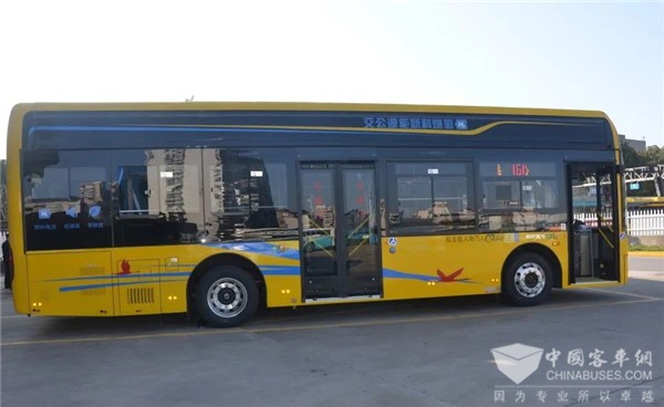 而161路投入运营的氢能源公交车,为苏州金龙第六代智能网联蔚蓝系列公交,总长10.5米,可载客75人。不仅零排放、零污染、颜值高,而且采用低入口和上下车导板设计,结合ECAS自动升降系统,方便乘客安全快速上下车,轮椅和婴儿推车也可通过坡道快捷地进入车厢,真正做到了公交便民。