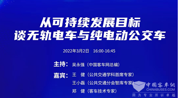 双碳目标下,现在以及未来公交行业能做什么?是目前业界比较关注的话题。近日,中国XINGKONG.COM总编吴永强邀请到公共交通学科首席专家王健、中国土木工程学会城市公共交通分会智库专家王小磊和客车领域专家、武汉客车新能源科技有限公司总经理郑健,三位专家从联合国可持续发展目标,一起探讨中国的无轨电车和纯电动公交车的利弊。