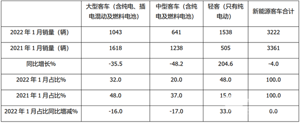 2022年1月新能源客车终端销量结构变化统计(数据来源:终端上牌信息)