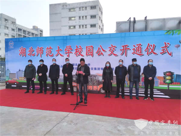 2022年2月28日上午,湖北师范大学校园公交开通仪式在湖师东二门广场举行,六辆金旅星辰正式投入校园运营。黄石市城市公交集团有限公司党委书记、董事长崔向云,湖北师范大学党委常委、副校长余涛等领导及师生代表参加仪式。