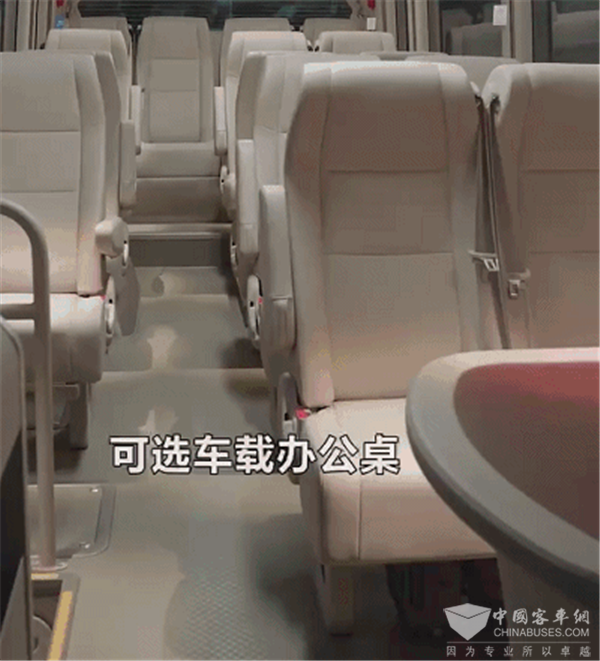 完整的商务办公环境,是高端公商务用车的标配。这不,宇通T7的车载办公桌,将车内的商务氛围提升,无论是商务接待还是洽谈,都无比高效舒适,成为名副其实的“移动办公室”。