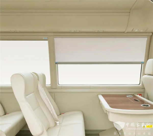 动可观风景流转,静可谈商场沉浮。坐在车窗边,如果想安静地办公,即可将T7的车窗帘拉下,高铁式的遮阳帘以及特殊的玻璃处理,既方便操作又能充分保证车内的私密性,让乘客的商务出行更显从容。