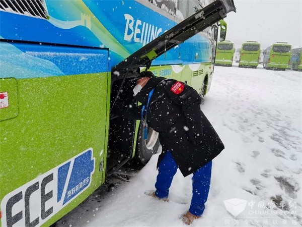 为服务本次冬奥会,福田公司组织起188人的服务保障团队。他们中的多数人都在春节之前就已经进入工作状态,延庆赛区应急救援组的李丽辉就是其中一员。应急救援,往往事发突然,因此“吃顿热乎饭”成为了队员们的奢望。“面包、火腿肠就准备在车里,工作结束就塞一口。”在李丽辉轻描淡写的口吻中,透露出奥运交通保障工作的辛苦和不易。与延庆、张家口赛区不同的是,在北京市内赛区参与保障工作的亓艳国表示,市区内有些道路未设专门奥运车道,为避免和社会车辆相互影响,需有交警开道,“只要观众上到我们的欧辉车,当车辆起步的一刹那开始,我们就不允许行驶中途出现抛锚、报警等故障。”