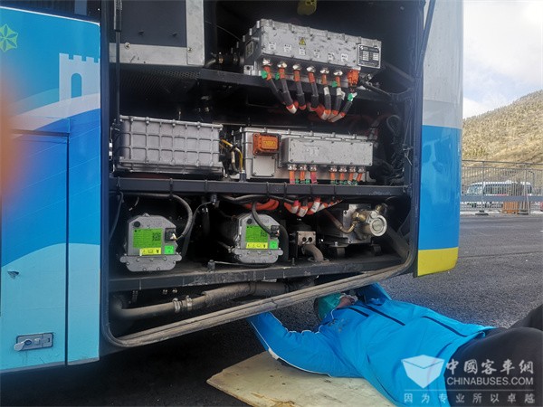 尽管有着丰富的大型活动用车服务保障经验,杨彪和组员们仍然对这些“首秀”的车辆不敢怠慢。头班车早上5点就要发出,组员们从凌晨3点开始,对着当天的发车表围绕每辆车进行点检。大到动力电池状态,小到氢系统的排气帽牢固程度,每辆车的“点检”都需要40分钟。此外,每隔4个小时,就需要进行一次氢浓度巡检,以延庆赛区212辆氢燃料客车为例,每台车进行一次氢浓度巡检需用时4分钟,四组人同时检查,完成212辆车的巡检需3.5小时。傍晚收车后,晚班组员还要与司机沟通进行问检,如有需要可及时对车辆进行维保。巡回服务保障组员,则要24小时监控车辆转态,做到随叫随到。