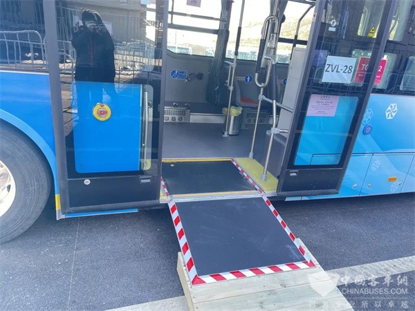 除绿色环保之外,宇通氢燃料客车中的无障碍设施也获得了多方赞扬。宇通氢燃料客车从点滴细节入手,设置了轮椅区域、轮椅提示按钮、车辆翻转踏板,配置了车身侧倾、翻板摆渡等功能来方便残障人士出行,以人性化关怀助力冬残奥会的顺利举行。