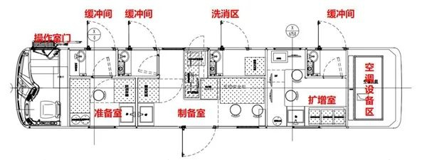 为满足疫情防控需求,中通核酸检测车严格按照P2+核酸检测实验室标准研发设计,符合PCR核酸检测实验室和二级生物安全实验室相关标准,配备专业医用检测设备,完全具备新冠病毒等病原微生物核酸和抗体检测能力。以一车三间六区的解决方案,大大提升了检测效率、检测量和准确率,打造出车轮上的“实验室”。