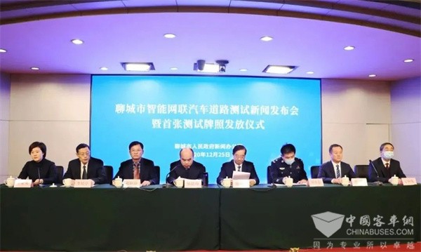 2020年12月,中通客车正式获颁聊城市首张智能网联汽车测试牌照,全面助力聊城智慧公交体系建设。