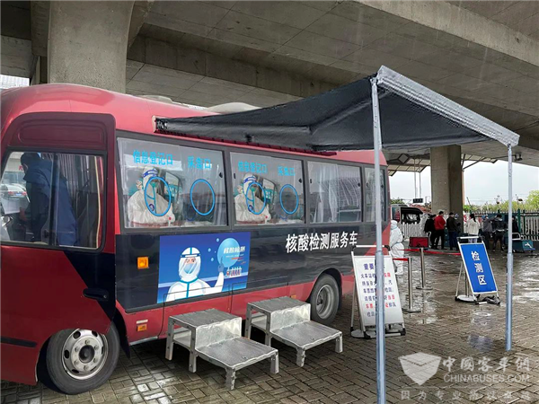 值得一提的是,4月12日,无锡客运集团定制的首批移动核酸采样车已投身抗疫一线,其中有一种车型由苏州金龙海格定制客运明星车型睿星改装而成,其完成2000人核酸检测仅需5小时,颇受当地民众、各级防疫部门的认可与肯定。