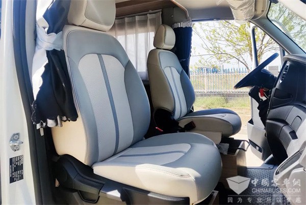 会客区采用连排双人座椅,皮质软包覆,包裹感和承托性俱佳。双人座椅的布局的优势在于,可以更大化保留生活区空间的同时,也可以让车主乘坐时,腿部空间充足。后期会客区这里也会安置可升降桌板。