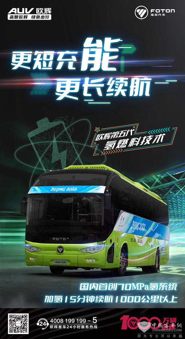 作为中国绿色客车领军品牌,福田欧辉是最早致力新能源客车研发、最早实现新能源客车商业化运营的企业,其推出的第五代氢燃料技术,进一步节能减排,助力新能源客车加速升级。