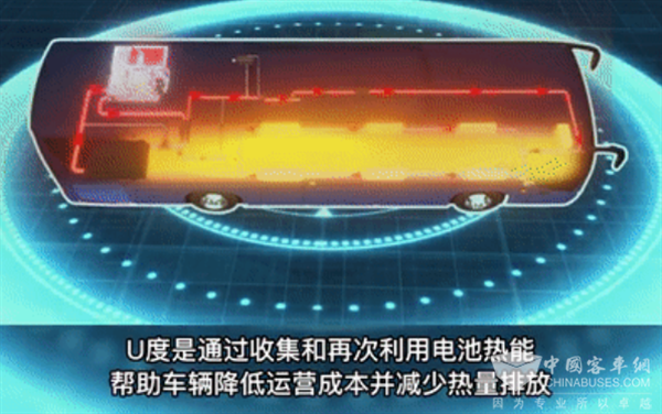 U度拥有高效可靠、智能恒温、绿色节能、安全舒适等特点,集空调、除霜、采暖、电池热管理为一体,将客车内部设置三个温度控制分区,通过余热交换器,利用燃料电池系统产生的废热为车内采暖和前风窗除霜、除雾。