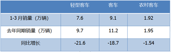 上表显示,今年1-3月农村客车销售1.92万辆,同比增长-1.54%,虽然在今年疫情的影响下出现了同比微弱的下降,但仍跑赢今年1-3月的轻客市场-21.6%的增速近20个百分点,也跑赢今年1-3月客车大盘-18.7%增速近17个百分点,说明目前农村客车市场需求的基本面相对来说仍然比较好,尽管当前受到了疫情的影响出现微弱下降,但在疫情向好后,可预见其需求旺盛的势头将继续出现。