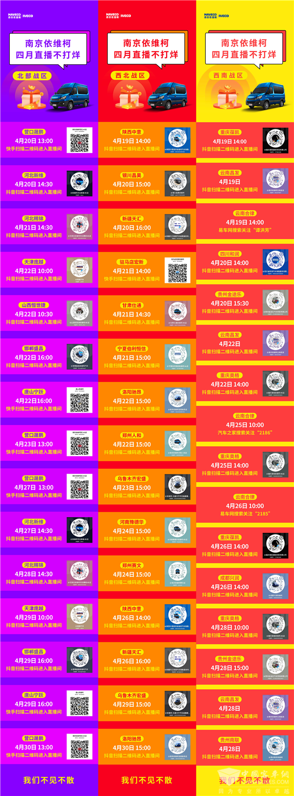 南京依维柯,四月直播不打烊。更多详情,请关注公众号:南京依维柯汽车;抖音、快手:南京依维柯,期待与您相约直播间,中大奖,买好车!