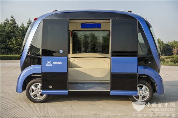 2019年4月全球首发的海格客车L4级量产无人驾驶纯电动巴士Pro-Blue“深蓝”,应用国内首款车规级无人驾驶控制器、海格自主研发的底盘线控等七大核心技术,匹配超高清摄像头、激光雷达、超声波雷达和智能决策系统,集高安全、高科技、高性能于一体,代表了“智能网联”技术方面的最新成就。