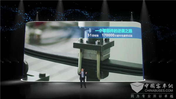 用户对一辆客车的评判标准,最看重的是经久耐用,宇通便从源头做起,“严选品材”。不仅制定严格的准入系统,100%选用业内头部供应商,而且对零部件进出厂执行全尺寸、全功能、全性能的两次100%全检。检验严苛到什么程度呢?据介绍,一辆宇通10米纯电动公交车的零部件高达8132种,以最常见的钢板弹簧为例,其进厂检验项目就有51项之多,小到标识清晰度,大到17万次破坏性疲劳试验,只有全面满足才能符合装车条件,如有一项不满足,则重新来过。