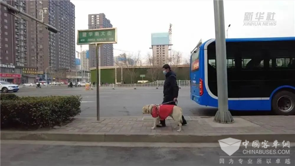 “滴——滴——”,熟悉的两声鸣笛声响起,高庆文和他的导盲犬“阿布”知道,95路公交车到了。
