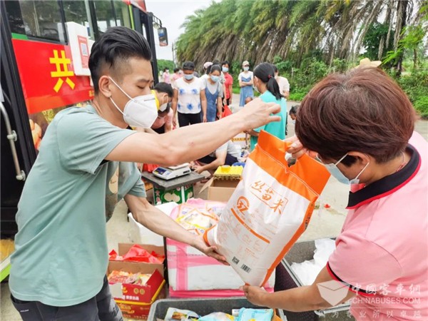 当得知需要应急保障公交车为管控区居民配送物资,中车电动驻湛江售后服务工程师第一时间主动报名参加配送任务。配送过程中,他们不仅是司机,还是搬运工,忙前忙后帮工作人员搬运配送物资上下车。5月14日当天,他们从早上8点一直忙到晚上8点。三天来,他们已为坡头片区村民运送物资6趟共1000余份。