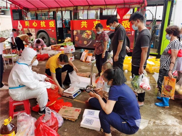 为解决管控区居民肉菜供应等问题,湛江公交集团公司开设“移动超市”专线,通过公交车将优质平价的生活物资送至相关区域,方便市民就近采购。中车电动C10以其大空间、高安全、智能化等特点,被湛江公交抽调,化身“移动超市”,成为应急车队的一员。