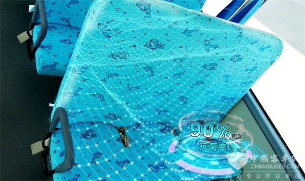 中通校车座椅采用专业抗菌面料,抗菌率达90%以上,能够阻止细菌、霉菌、病毒的滋生。