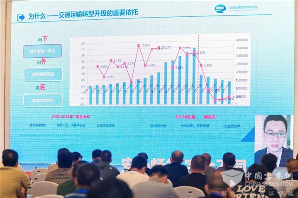 本次活动重点对城乡交通运输一体化发展态势、未来走向、落地实施进行了研讨。其中,交通运输部科学研究院综合运输研究中心总工程师刘振国在发言中指出,当前大力发展城乡交通既顺应了社会经济发展和乡村振兴发展形势,也是行业转型升级的需要。在历经高速增长的“黄金十年”后,从2012年起,我国道路客运发展进入了新常态。其转型升级有三种途径:一是“向外”,加强与铁路、民航等运输方式的衔接,发展旅客联运;二是“搞活”,发展定制客运、旅游包车客运等;三是“向下”,鼓励企业开展城乡客运一体化,发展城乡公交。而在一系列国家政策支持和交通运输企业的努力下,城乡交通运输一体化发展正逐步走向深入。