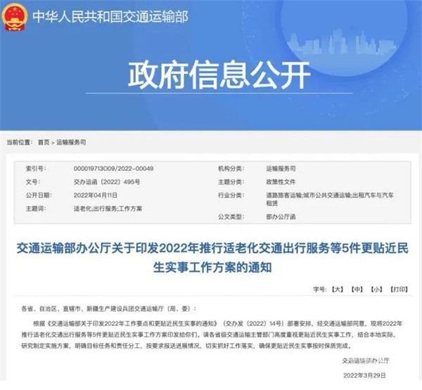 近期,交通运输部官网印发了《2022年推行适老化交通出行服务工作方案》,特别针对“低地板、低入口”公交推广数量,提高适老化交通出行服务做了重点布局,中车电动在“低地板、低入口”公交领域积极响应政府号召,助力解决老年人群出行问题。
