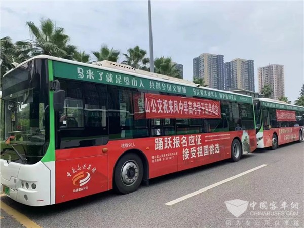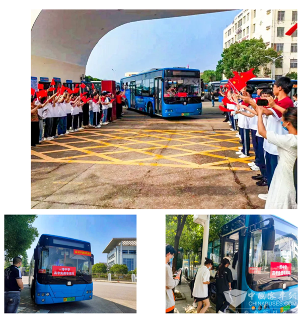 中车“爱心送考”车身披红色外衣
