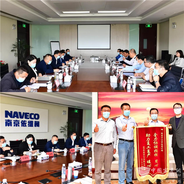 “夹缝中”的南京依维柯很快就迎来了来自省市区的多方援手。浦口经济开发区成立保供专班,由专人负责南京依维柯运输车辆接送工作;浦口区税务局组织“税事好商量”政策服务队,确保国家税费政策企业应享尽享;市工信局于第一时间向省工信厅汇报情况,并通过协调,为无锡江阴的一家原材料供应商打开运输“绿色通道”。